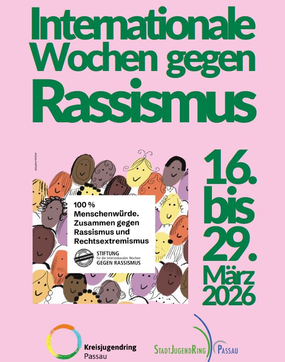 Vom 16. bis 29. März 2026 finden die Internationalen Wochen gegen Rassismus unter dem Motto „100 % Menschenwürde. Zusammen gegen Rassismus und Rechtsextremismus.“ statt. Der Kreisjugendring Passau
