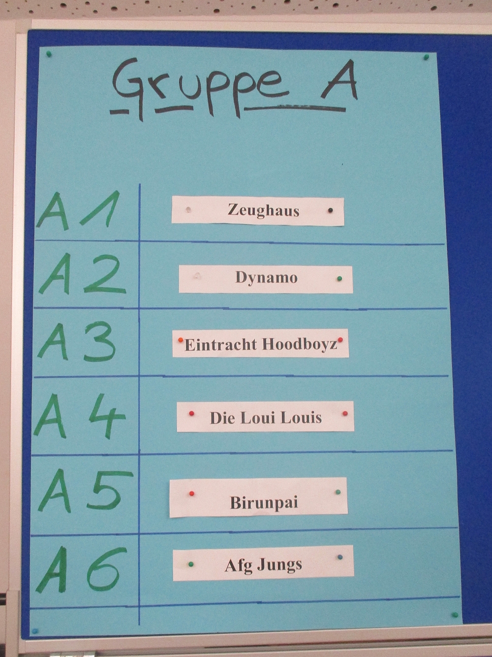 - Gruppe A: Zeughaus, Dynamo, Eintracht Hoodboyz, Die Loui Louis, Birunpai, Afg Jungs
