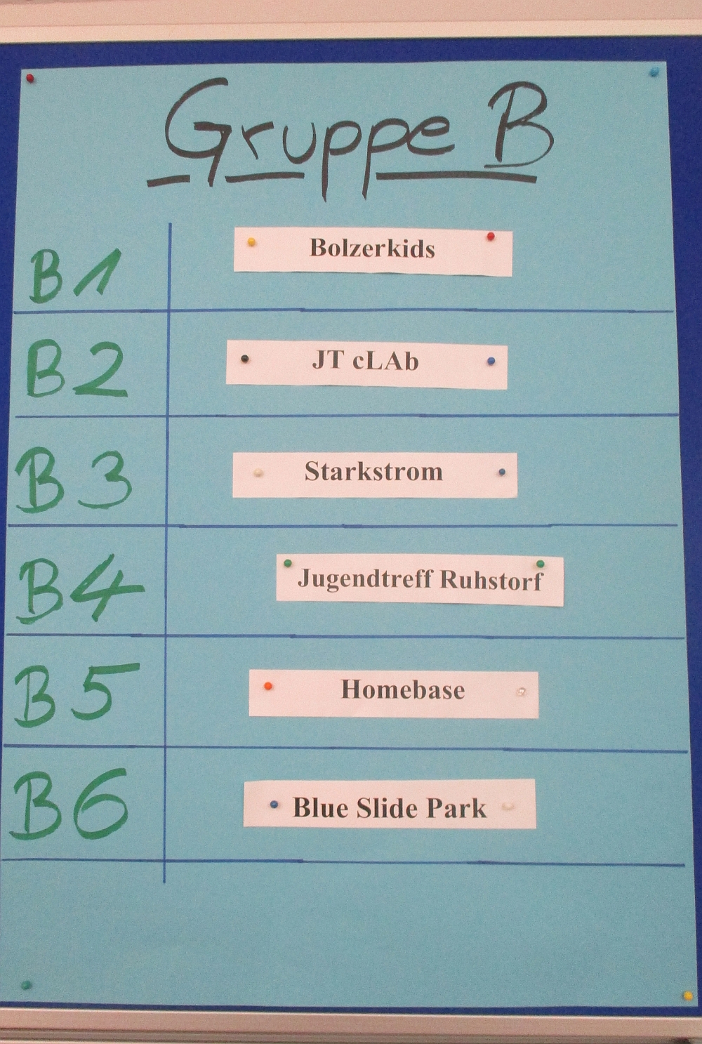- Gruppe B: Bolzerkids, JT clAb, Starkstrom, Jugendtreff Ruhstorf, Homebase, Blue Slide Park