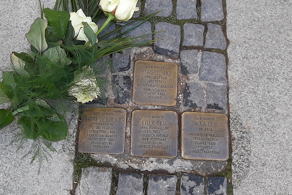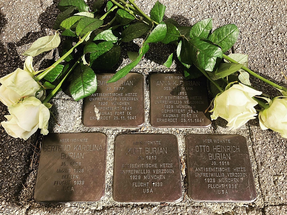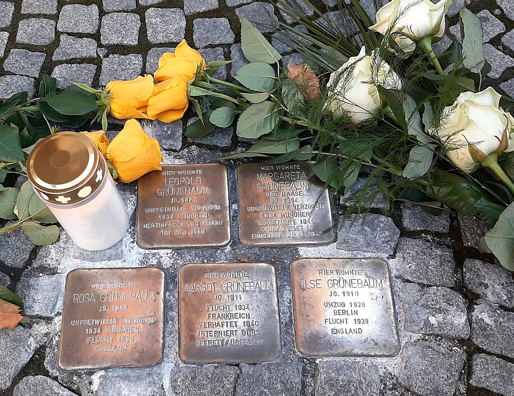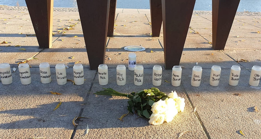 14 Kerzen wurden am Mahnmal aufgestellt, die bildhaft zeigen sollen, dass es nicht um eine anonyme, riesige Zahl an Opfern des Holocaust handelt, sondern sich dahinter Einzelschicksale verbergen. Das, der Familie Burian, mit den Eltern Anna und Emil und den Kindern Trude, Karl und Otto, deren Stolpersteine am Anger verlegt sind. In der Ludwigsstraße 19 wird auf Henriette Pick, ihre Töchter Paula und Lilly und auf den Pflegesohn Robert Weilheimer aufmerksam gemacht. An die Familie Grünebaum, mit den Eltern Leopold und Margareta, und die Töchter Rosa, Margot und Ilse erinnern die Stolpersteine in der Nikolastraße 10. Der Stadtjugendring legte zusammen mit dem BDKJ und der Evangelischen Jugend Rosen zum Gedenken nieder.