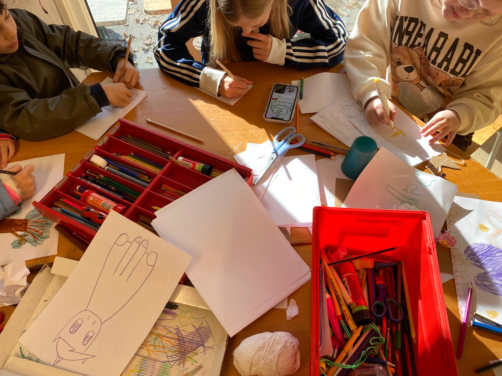 Zum Ende der Woche dominierte der Nebel das Ferienprogramm, und so wurden die Gruppenräume vermehrt genutzt. Neben Windlichtern die mit glitzernden Steinen verziert wurden, waren Schrumpffolie, selbst gestaltete UNO-Karten und Ausmalbilder sehr gefragt. Auch zum Lesen, Spielen und Ratschen wurde die Zeit genutzt. Manche Kinder halfen in der Küche beim Schälen von Gemüse oder dem Backen von Muffins. Gerade bei der Kälte war dann das traditionelle Lagerfeuer am Freitag mit Stockbrot und Marshmellows noch mehr gefragt als sonst.