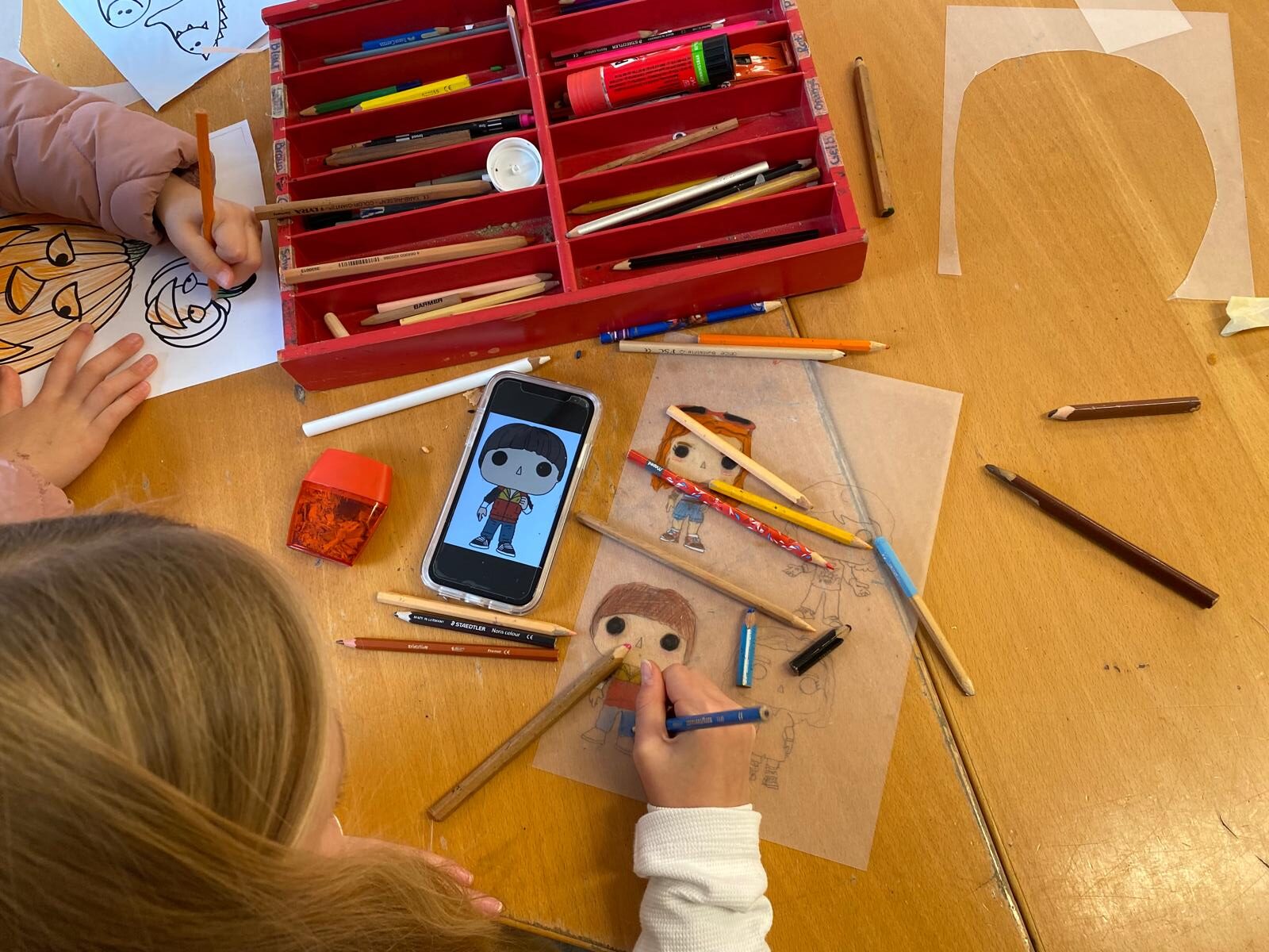 Die Woche war zweigeteilt: Am Anfang der Woche, bei Sonnenschein, nutzten die maximal 35 Kinder wieder das Waldgebiet aus, um die bunten Blätter und Äste zum Bau von Lagern zu benutzen und bei schönstem Herbstwetter die Zeit draußen zu verbringen.