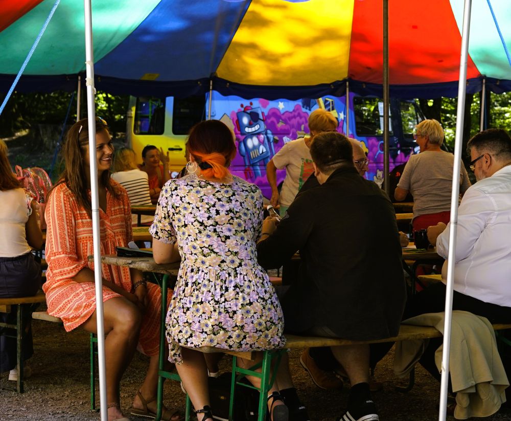 Unter dem bunten Zirkuszelt lauschten die Eltern den Reden und führten viele Gespräche, während die Kinder im Wald tobten, auf der Wiese mit dem riesigen „Vier-Gewinnt“ spielten, sich Glitzertattoos machen ließen oder Taschen bemalten.